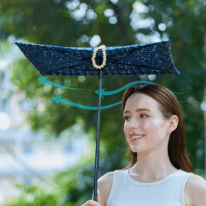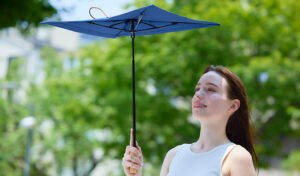 従来の日傘は“丸く広がる”形ですが、日傘は「大きいから便利」というわけではありません。