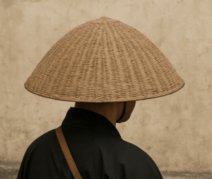 顔を隠し、日差しを遮り、控えめに佇む姿は、まるで日常に溶け込む小さな禅の道具。ただの機能美ではなく、心まで整えるかたちです。