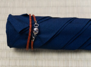 和柄:数珠をイメージしたデザインを取り入れています。禅僧が手にする数珠は、祈りと静寂の象徴。傘をたたむその所作に、心を整えるような穏やかさを添えました。